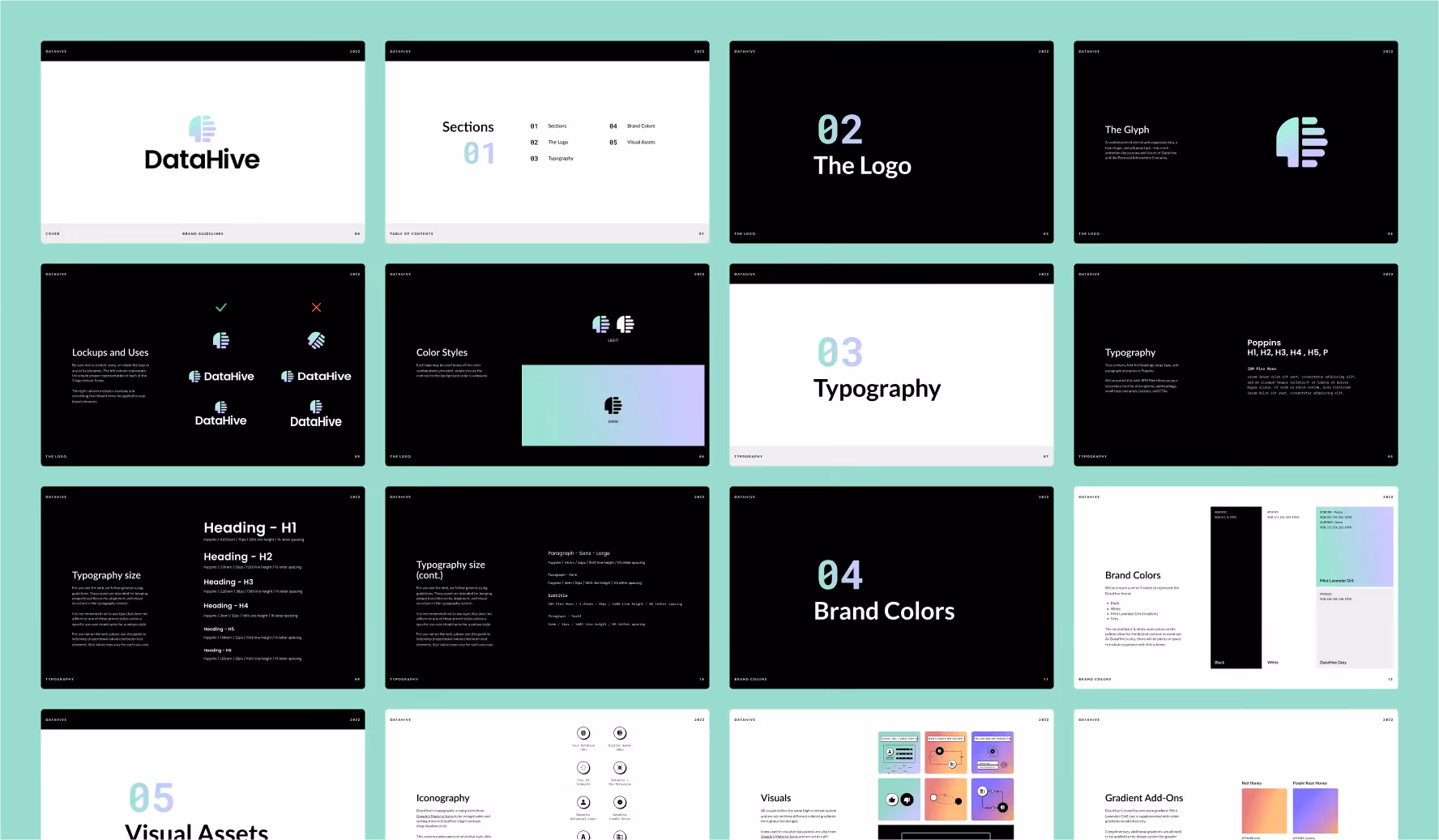 The visual identity blends sophisticated gradients, crisp typography, and custom Lottie animations that reinforce DataHive’s mission to protect data while moving the industry forward. The brand visuals are sleek and engaging, balancing professional polish with a sense of momentum. Each product and content piece has its own unique iconography and interactive elements, making complex information feel approachable and visually engaging.