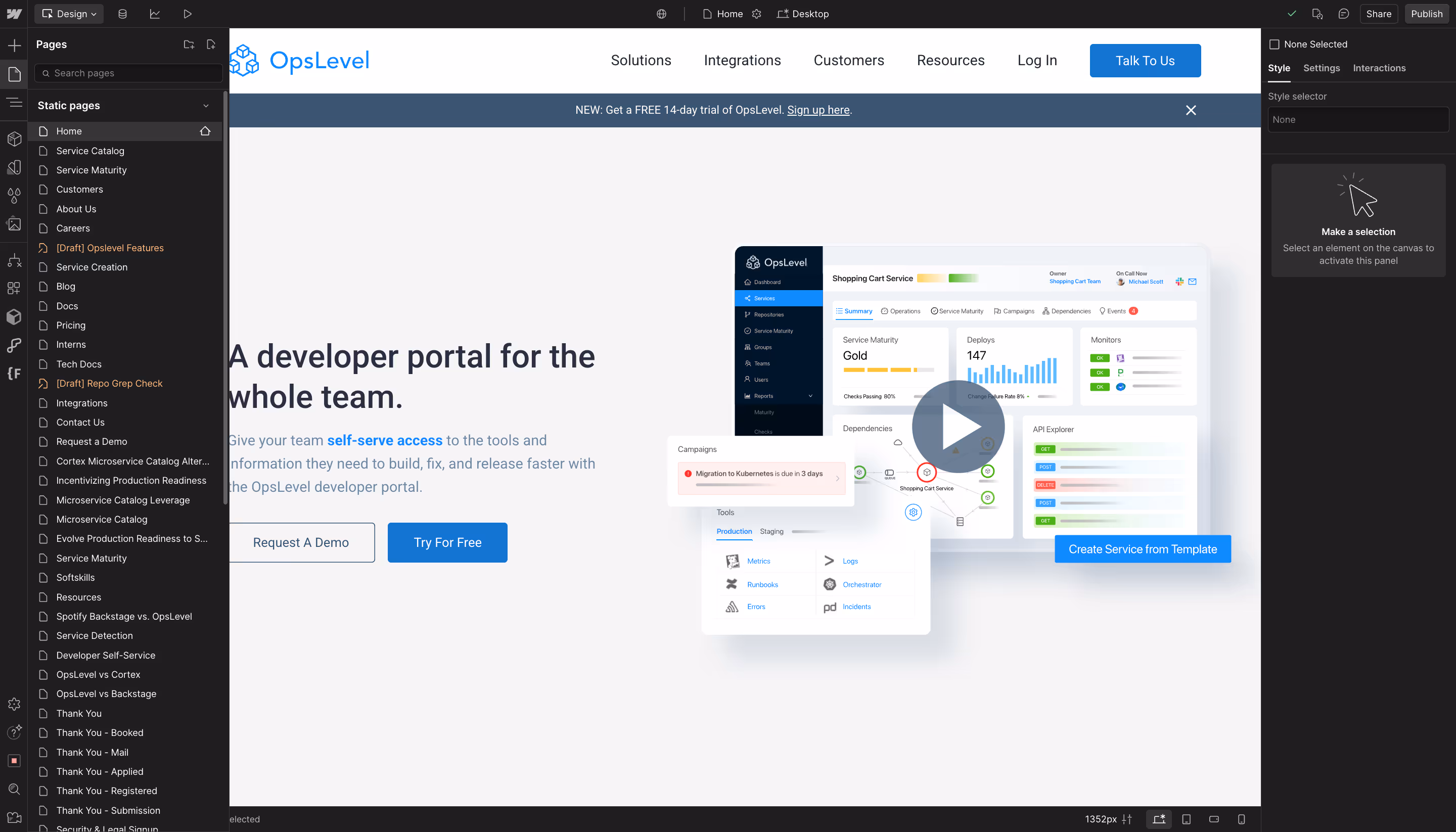 Today, we continue to serve as OpsLevel’s creative partner—supporting their team across Webflow updates, graphics, animations, and special creative needs. From minor content adjustments to new page launches, we move fast to support their growing team.